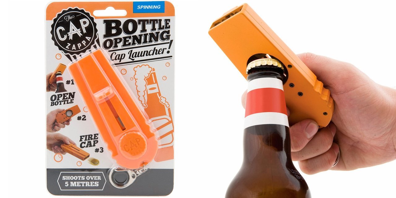 El mecanismo de este peculiar gadget es muy sencillo. Al abrir la botella la chapa de ésta se quedará en el interior del abrebotellas para que luego podamos utilizarla a modo de proyectil. Por supuesto no debes preocuparte por la integridad física de nadie, porque los lanzamientos son del todo inofensivos. Aunque eso sí, son muy divertidos.