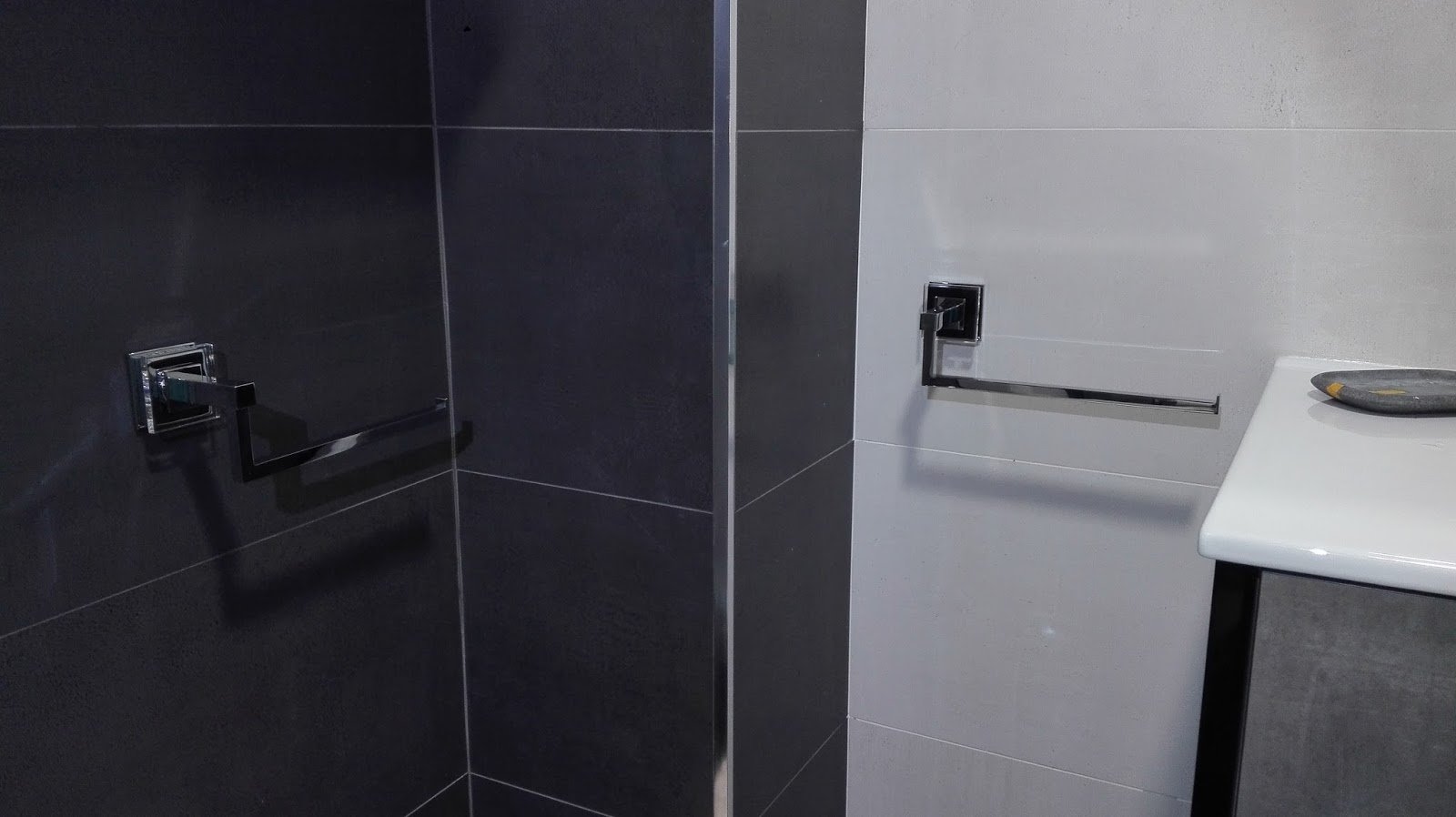 En este caso te presento un toallero que se pone sobre los muebles, es decir, no se instala con taladro ni con pegamento, sino que se ajusta sobre un mueble.