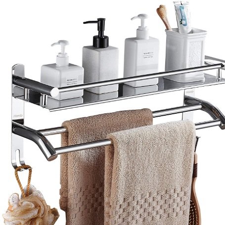 Un modelo completo que no solo cuenta con un toallero para poder poner un par de toallas colgadas, sino que también incluye una pequeña estantería para que puedas poner cosas y aprovechar mejor el espacio.