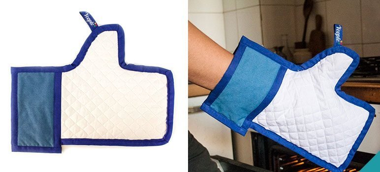 ¿Enganchado a Facebook? ¡¡Demuéstralo hasta en la cocina!! Con este guante de cocina que imita el diseño de los “Me gusta” de Facebook podrás hacerlo con mucho estilo.