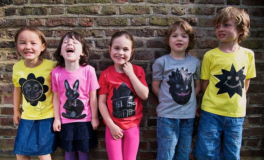El gusto de los niños por la pintura es algo que todos conocemos de sobra. Si le das una tiza a un niño seguro que no para hasta haberlo pintado todo. Aprovechando esta afición muchos padres colocan pintura de pizarra en sus casas, pero hoy llega algo nuevo: camisetas infantiles con pintura de pizarra. La idea es muy original, ¿verdad?