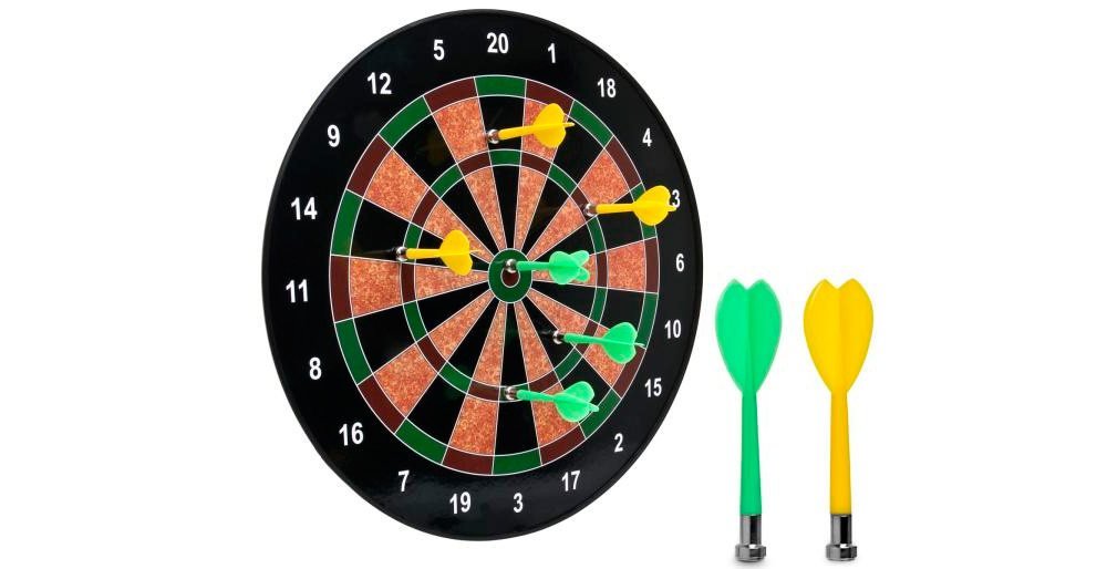 Y para hacer este juego completamente seguro, los dardos que podemos lanzar presentan una punta magnética que los hace inofensivos. Esta diana especial está realizada en un material magnético que hace que los dardos se “pinchen” sin problemas. Es algo parecido a los dardos tradicionales, pero 100% seguro.