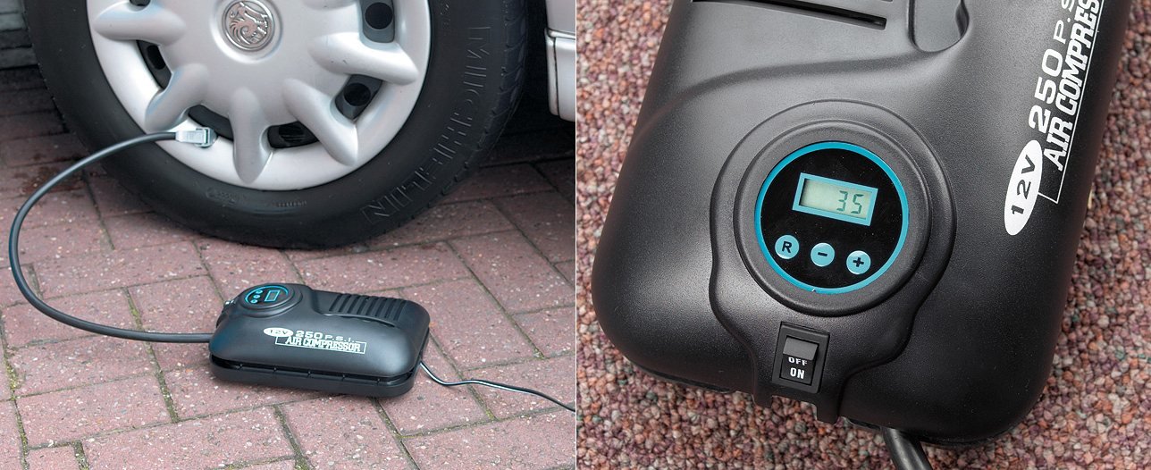 Si no quieres tener que recurrir siempre a las gasolineras para conocer la presión de las ruedas de tu coche y tener que hincarlas, a continuación te mostramos un compresor de aire portátil que medirá de la misma forma la presión y que igualmente te ayudará a hincharlas.