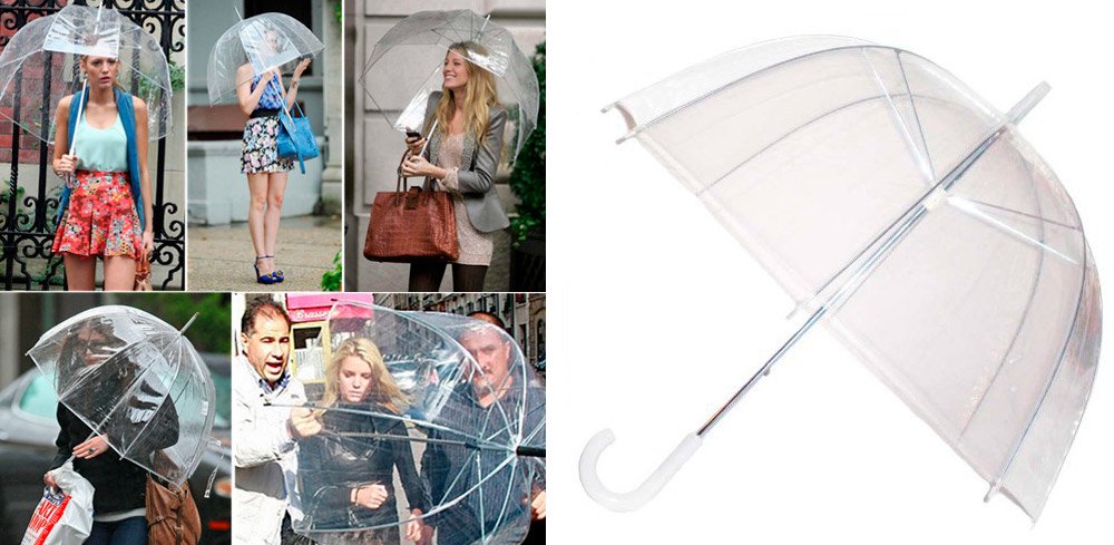 Y decimos lo de sentirnos como una celebrity porque son muchas las famosas que lo llevan en su vida diaria. ¡Y las chicas de la conocida serie Gossip Girl también! Es el paraguas transparente de moda y tú puedes hacerte con él.