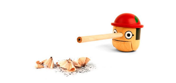 Y es que este sacapuntas se inspira en la figurita de madera del cuento, pero la nariz es el lápiz que podremos usar tanto como queramos. Pero cada vez que le saquemos punta, éste se hará más pequeño y, por tanto, la “nariz” de Pinocho también se hará más pequeña.