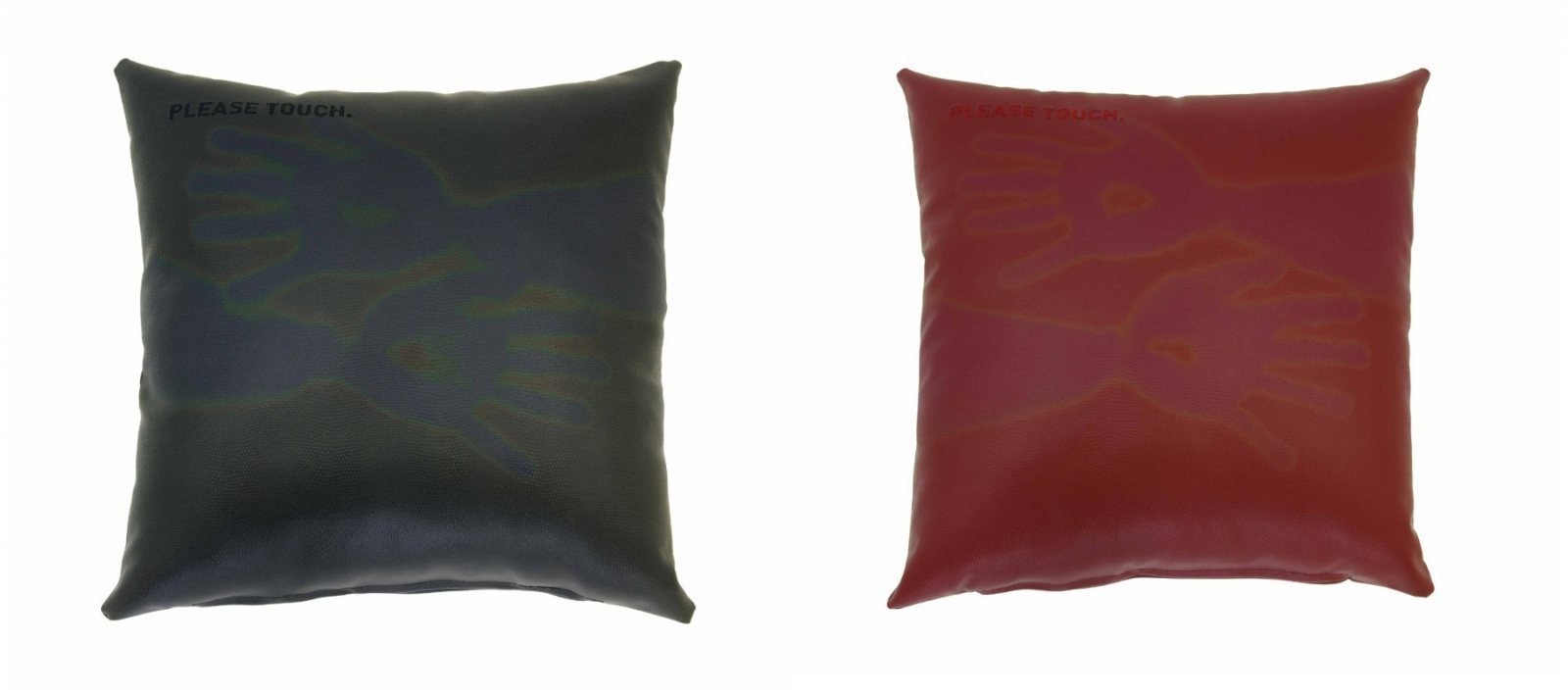 Gracias al tejido especial con el que están hechas, estas almohadas se colorean con el calor corporal que reciben. Así que si colocas las manos, los pies o cualquier parte del cuerpo en ellas, ésta se quedará plasmada en las almohadas.