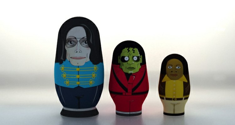 La matrioska comienza con un Michael de piel más clara simbolizando al cantante de la época final de su carrera, pasa por el traje que lucía Jackson en Thriller y termina en el pequeño componente de los Jackson 5. Esta muñeca rusa tan especial tiene un precio de 250 euros.
