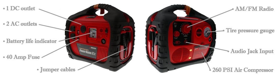 Llenado de ruedas, cargador de baterías (incluso de coche), medidor de presión, etc. Son muchas las utilidades que nos ofrece el cargador compacto Power Dome EX 400 Watt.